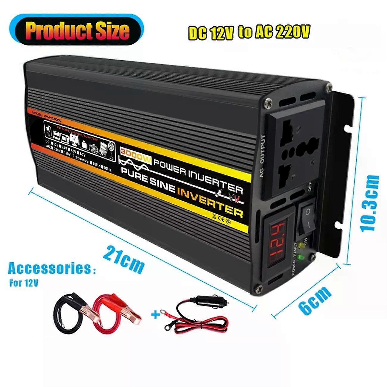 3000W-8000W Pure Sine Wave Power Inverter Voltage Transformer Intelligent Digital Display Car Home DC12V to AC 220V Converter