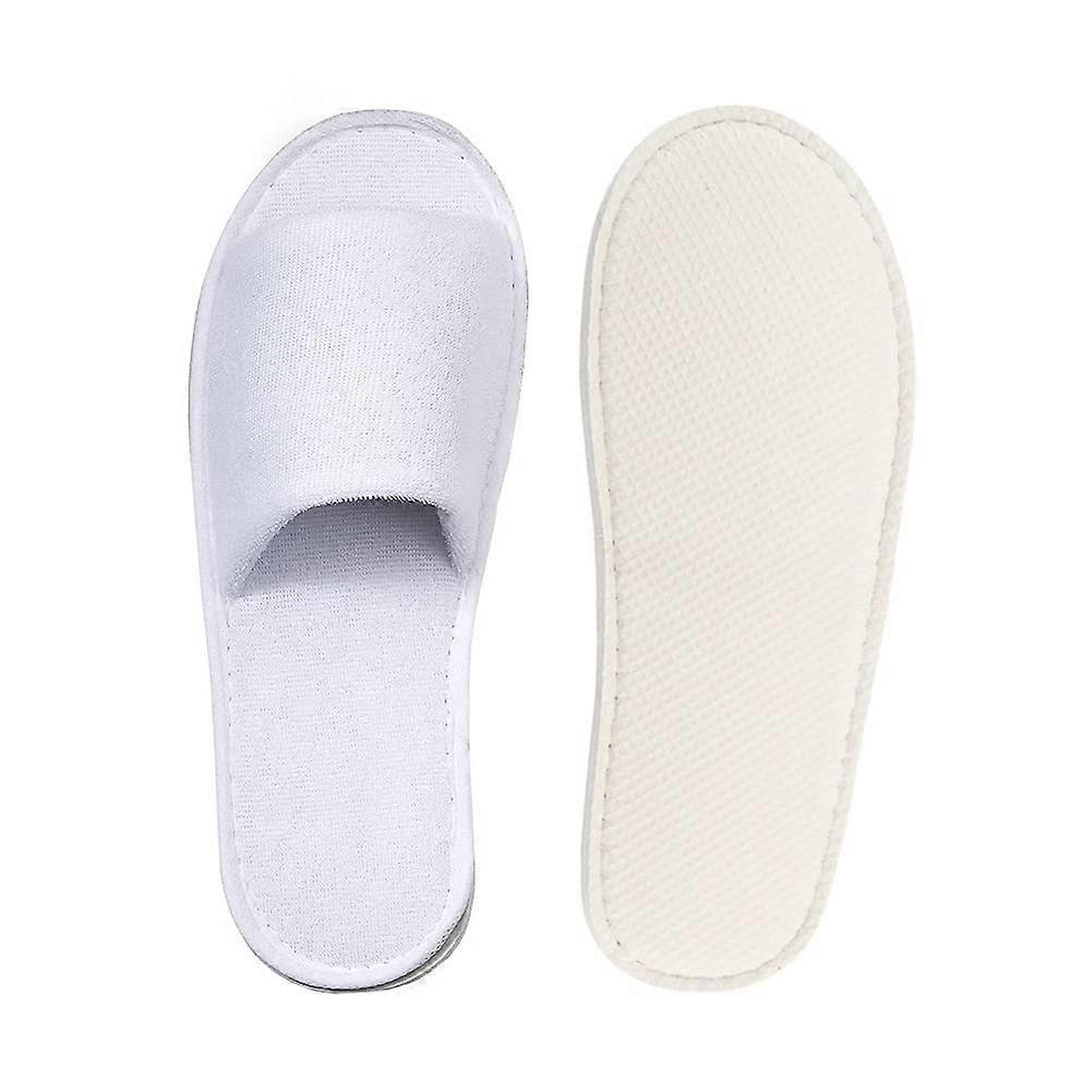 5 Pairs of Classic 5star Hotel Slippers Disposable Deluxe Closed or Open Toe Non Slip Indoor Quality Slippers Washable and Foldable for Spa Party Guests and Travel (Mens, Terry Open Toe) Why choose these slippers Practical convenience for guests and travel: five pairs included so you can outfit multiple guests or pack several pairs for longer trips. The disposable deluxe design offers easy, hygienic use while still feeling comfortable. Comfortable terry material: soft terry uppers provide a familiar hotelstyle feel that is gentle on the skin and breathable for indoor wear. Safe indoor use: non slip soles reduce the risk of slips on tiled or smooth floors, giving steadier footing in bathrooms, spas, and hotel rooms. Space saving and reusable when needed: foldable construction packs flat for luggage and storage. Although designed for disposable convenience, the slippers can be washed for short term reuse when appropriate. Key features at a glance Quantity: 5 pairs per pack Style: Classic 5star hotel slipper design Toe options: Closed or open toe available; this listing is for Mens, terry material, open toe variant Material: Soft terry upper with cushioned footbed Sole: Non slip indoor sole suitable for tile and hardwood surfaces Functionality: Washable and foldable for compact travel packing Typical use scenarios Spa and salon visits: Provide hygienic, comfortable slippers for clients during treatments or for use in relaxation areas. Guest amenities and events: Ideal for offering guests at home, at parties, or in short term rentals where easy turnover and cleanliness matter. Travel and hotel stays: Pack flat into luggage to use in hotel rooms, hostels, or while staying with family. Fit and care Mens open toe fit designed for common adult sizes; check size guidelines when available. Machine wash or hand wash gently and air dry to preserve shape and texture. Fold flat for storage and transport. This slipper set delivers hotelstyle comfort, simple care, and practical features aimed at guest use and travel without adding unnecessary complexity.