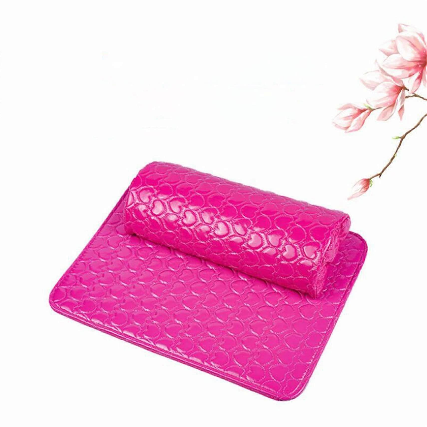 Nail Arm Rest PU Leather Cushion with Ergonomic Hand Support for Manicure, Rose Red