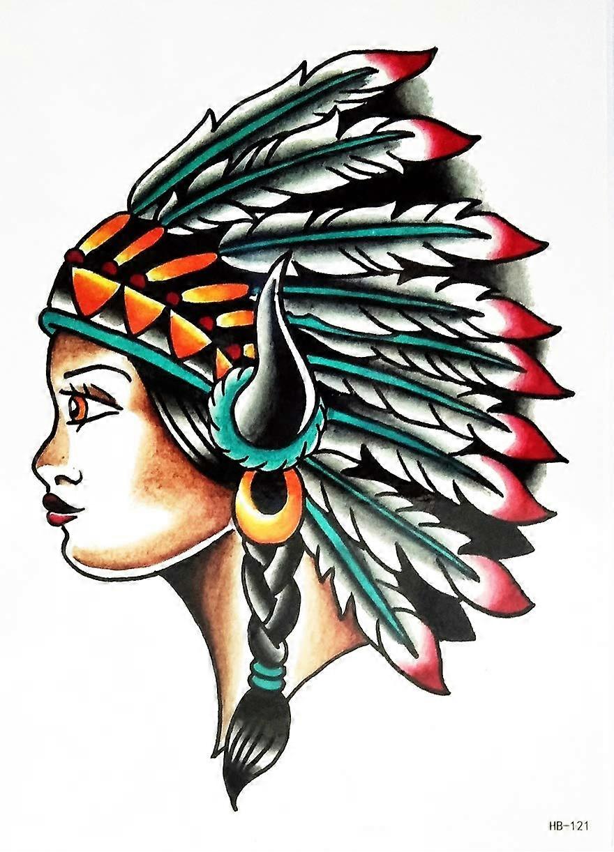 Large Indian Chief Head Temporary Tattoo Sticker for Adults and Teens, Realistic Body Art