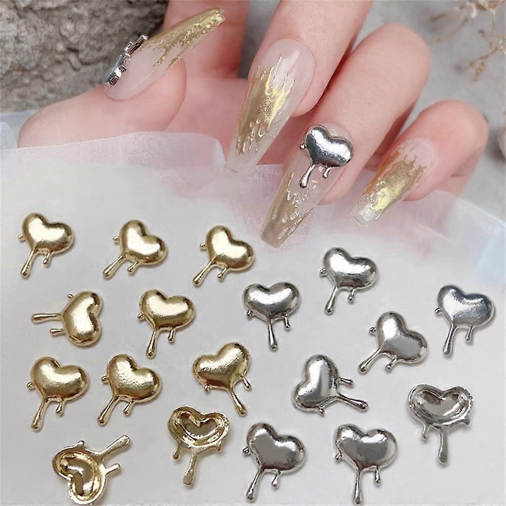 20 Pieces 3D Heart Nail Charms, Alloy, Gold and Silver Finish Product overview These 3D heart nail charms are metal embellishments made from durable alloy. The set contains 20 pieces, enough for multiple manicures or for sharing between professional and use. Each piece features a raised heart design with a subtle teardrop detail and a gold or silver metal base that adds dimension and shine to acrylic or natural nail art. Key benefits Ready to use and versatile: provides instant decorative impact for manicures without advanced tools. Suitable for both professionals and beginners. Durable alloy construction: resists bending or breaking in everyday use, so embellishments stay looking sharp longer. Complete set for multiple looks: 20 pieces let you create matching designs on both hands or use a few accents per nail. Multiuse decoration: works beyond nails for craft projects, phone cases, glasses frames, greeting cards, and body art. Features and specifications Quantity: 20 pieces per package Material: alloy with gold and silver finish Design: 3D heart shape with teardrop detail and a raised metal base Compatibility: suitable for acrylic nails, gel nails, press on nails, and general craft applications Condition: brand and How to apply 1. Clean and prepare the nail surface. 2. Apply base coat or desired polish and allow it to fully dry. 3. Apply nail glue to the charm or nail, position the charm, and press gently until secure. 4. Finish with a coat if desired to increase adhesion and longevity. Practical use scenarios Special occasion manicure: add a heart charm to accent nails for weddings, anniversaries, or date nights. Quick salon or at home upgrade: use a single charm on each hand to create a polished, professional look with minimal time. Craft and accessory decoration: attach to phone cases, glasses frames, or handmade cards for a custom metallic detail. What you get 20 alloy heart nail charms, gold and silver finish, ready to apply. This set provides a simple, enduring way to add three dimensional metallic accents to nail art and creative projects.
