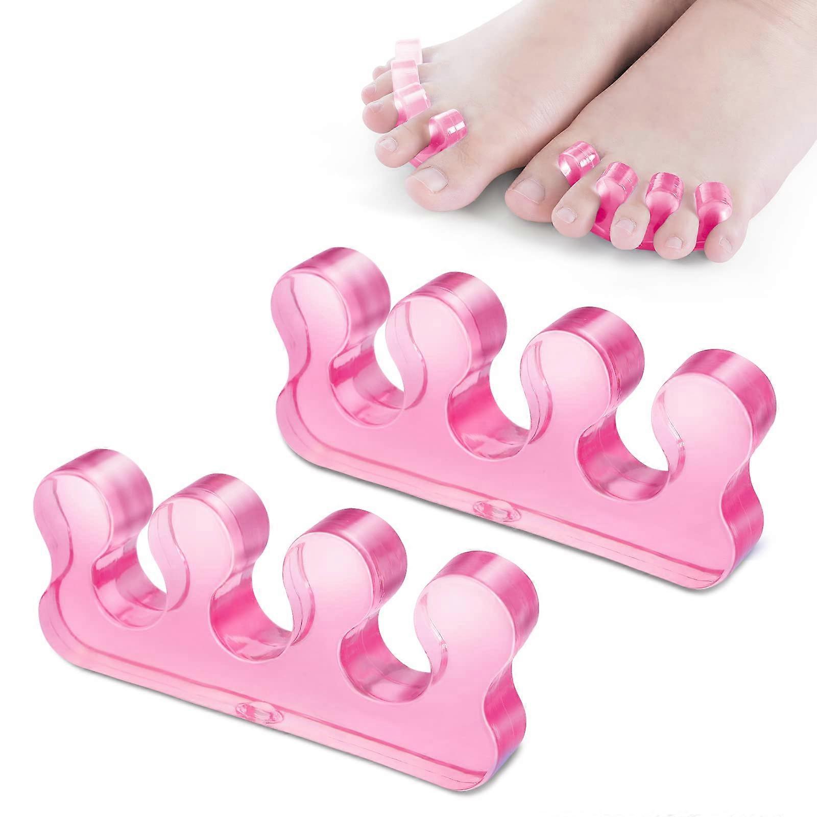 Toe Separators Gel 3Hole Soft Silicone for Pain Relief Pedicure Overlapping Toes Pink