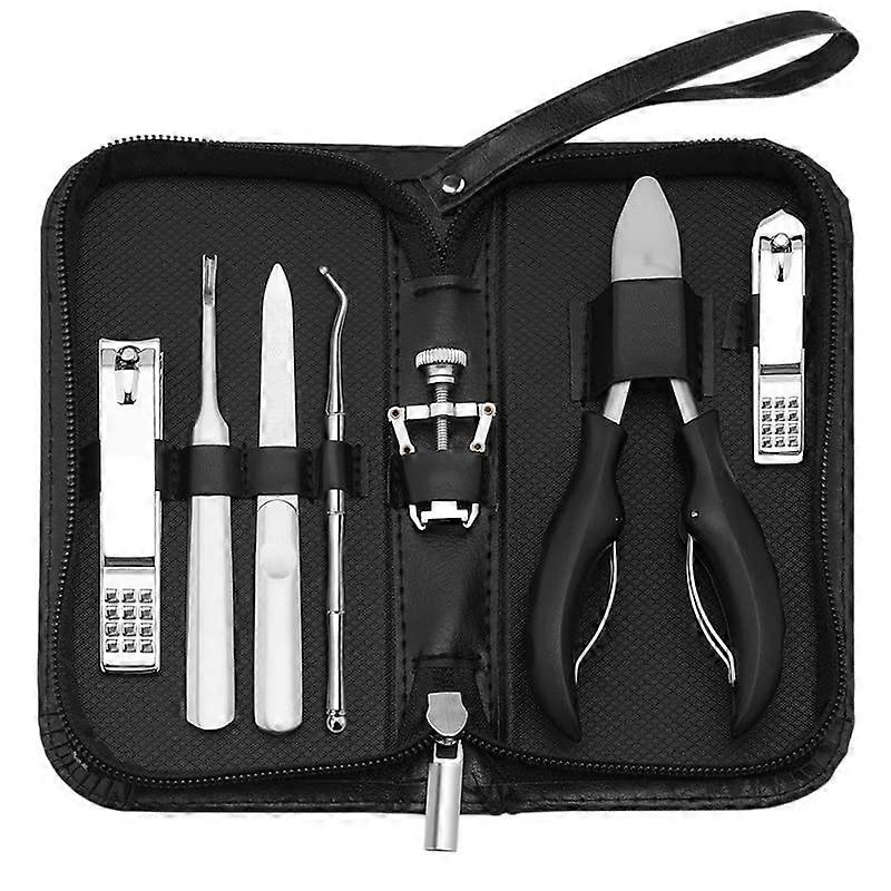 Professional Stainless Steel Manicure Pedicure Set, 7 Piece Nail Care Kit with Leather Case Ref: 1278
