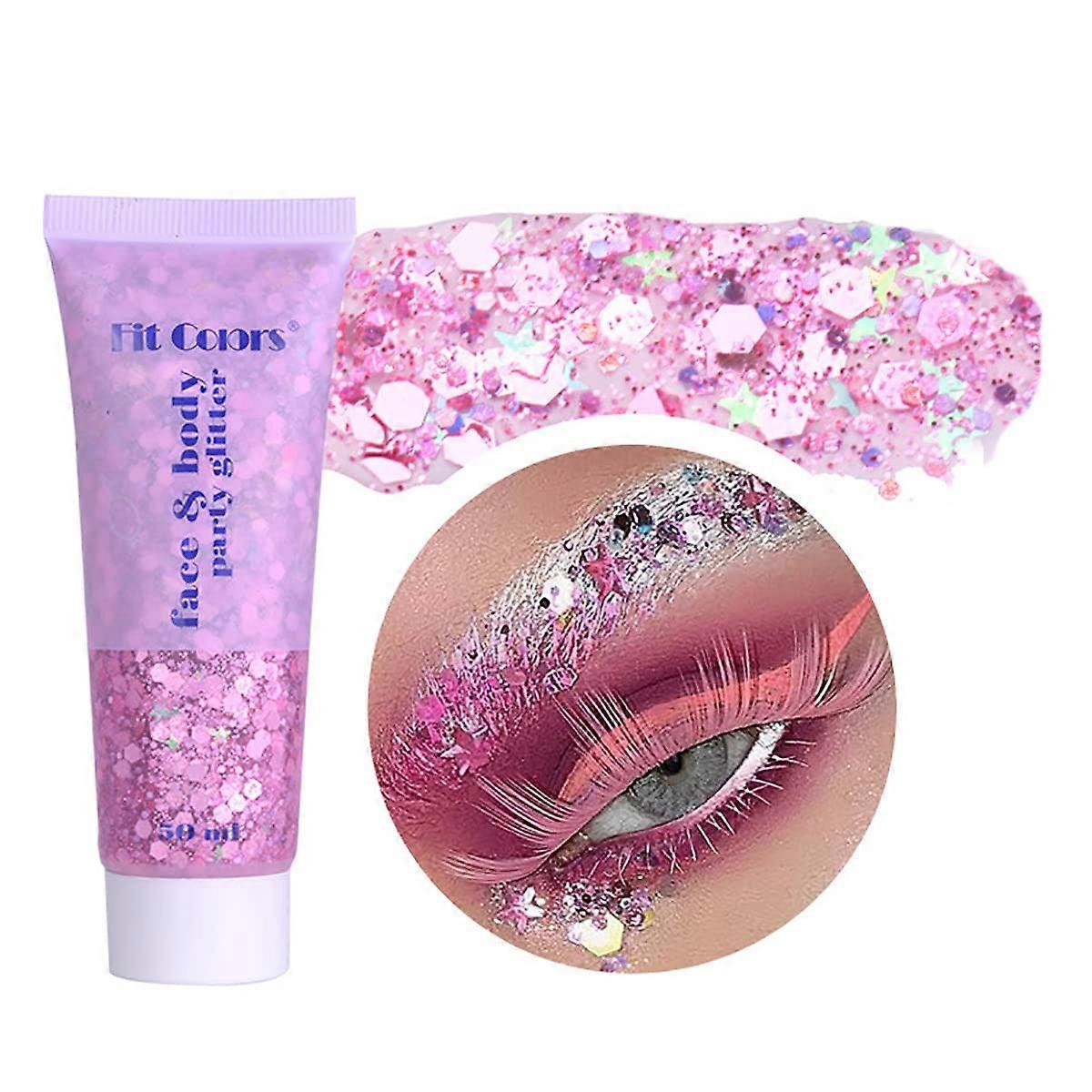 Body Glitter Face Glitter Gel with Mermaid Sequins, Chunky SelfAdhesive Sparkle for Festival Rave, MultiUse Pink