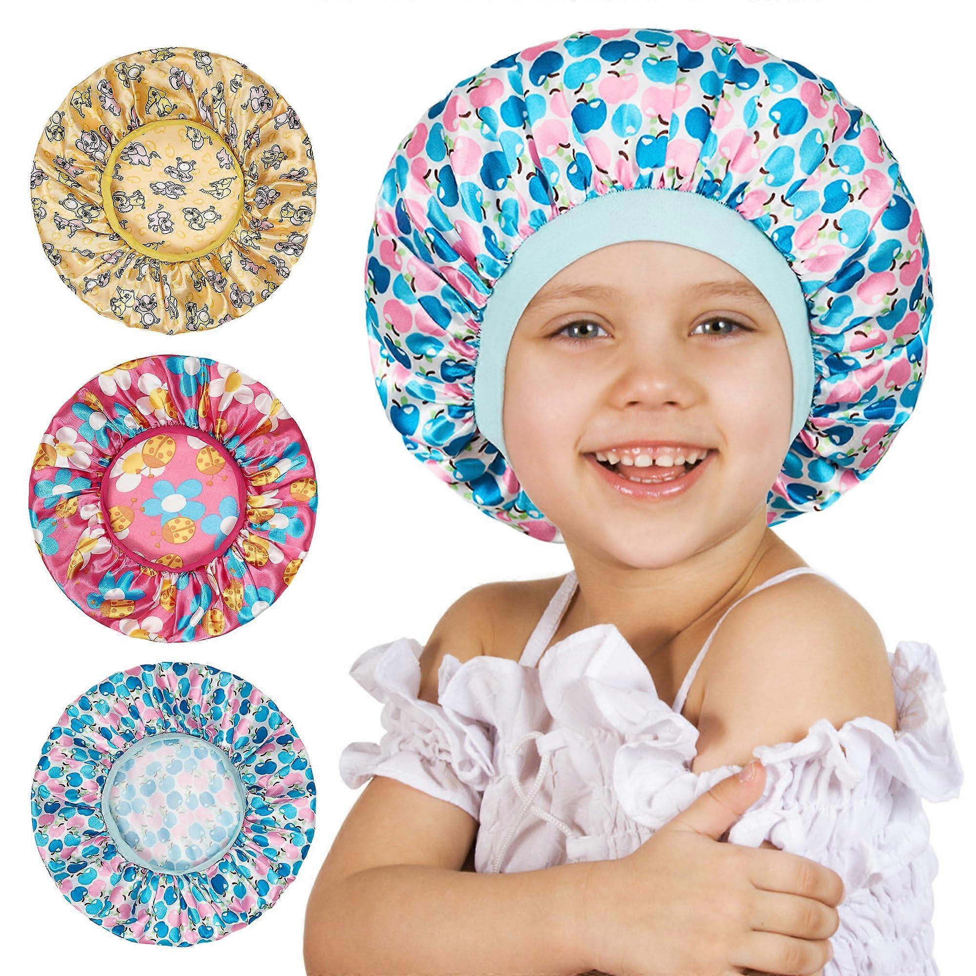 Kids Satin Bonnet Set with Wide Band for Curly Hair, Silk Sleep Cap for Toddlers and Children