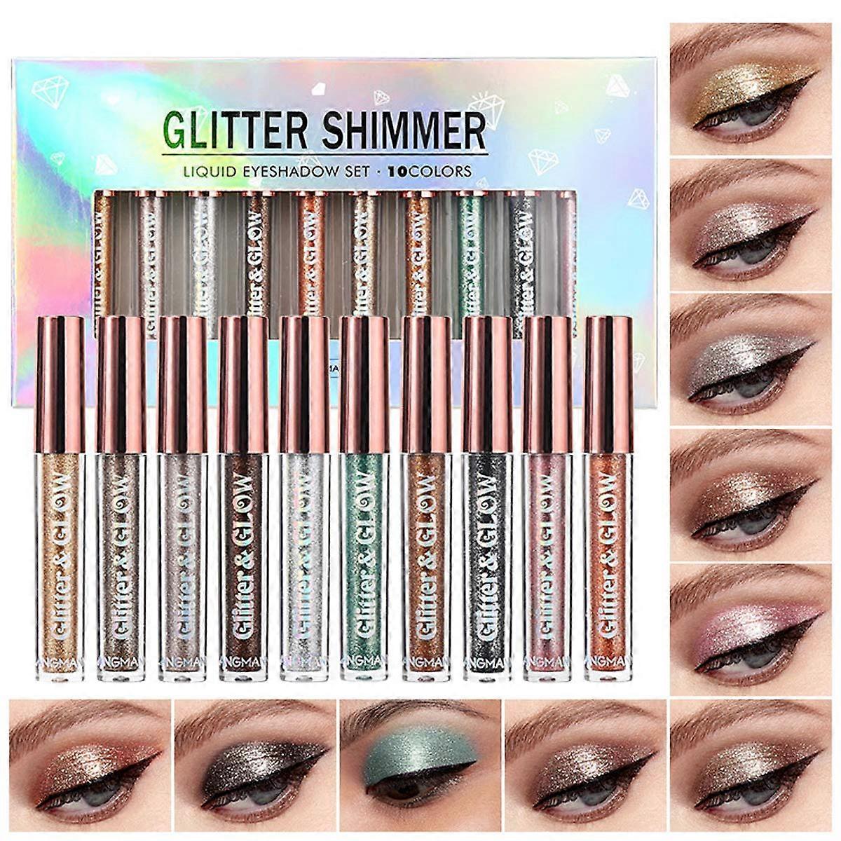 10 Colors Liquid Glitter Eyeshadow Set Waterproof Long Lasting Metallic Shimmer Finish