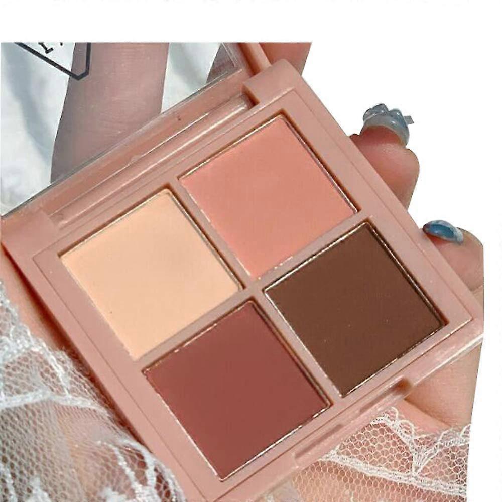 4 Color Nude Eyeshadow Palette with Brush, Pigment Matte and Shimmer, Long Lasting Waterproof