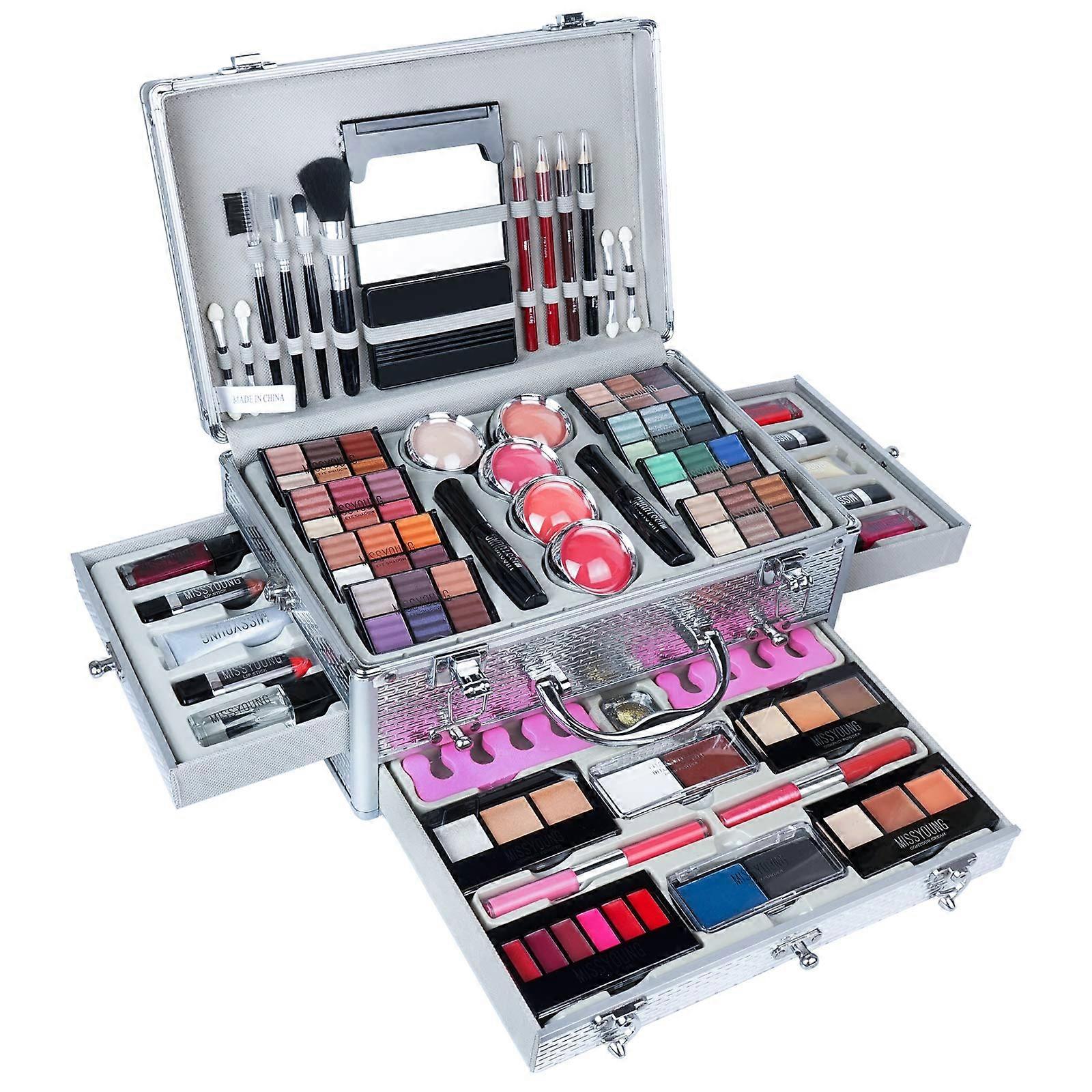 Makeup Box Set with Brushes, AllinOne Cosmetic Storage Case for Travel and Daily Use