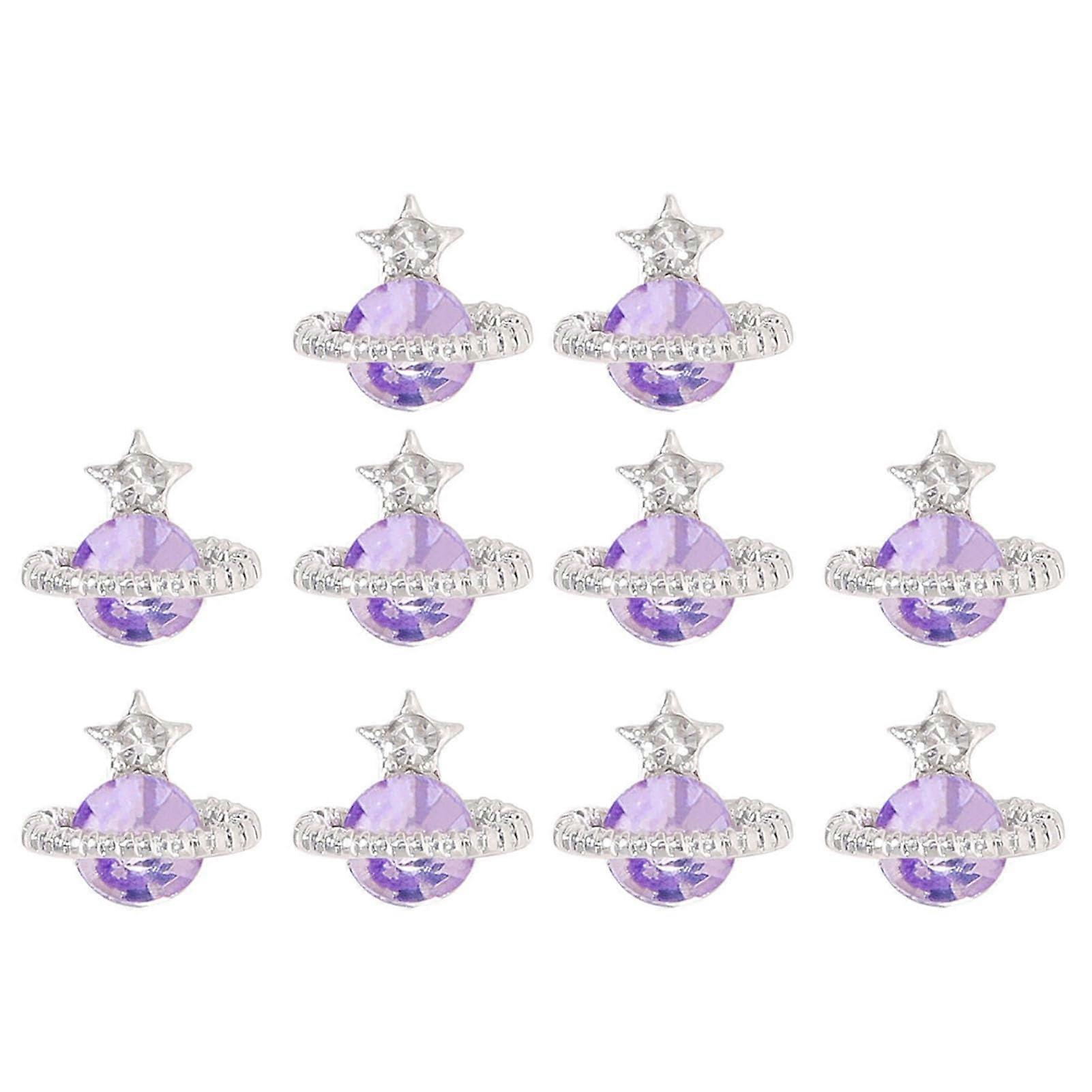 10Pcs Nail Art Charms 3D Heart Planet Glitter Alloy Cubic Zirconia Decorations for Women Gifts