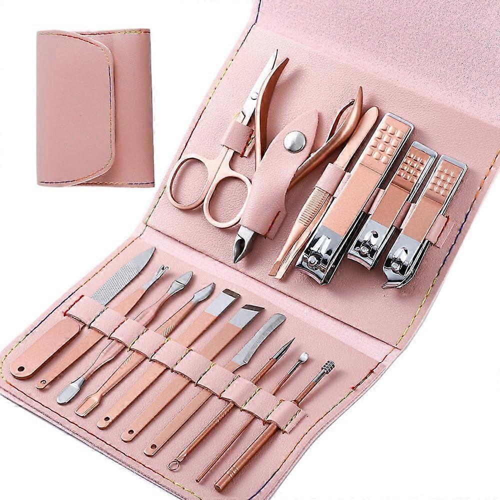 Manicure Set 16pcs Stainless Steel Nail Clippers Trimmer Kit with Case, Pink Travel Pedicure
