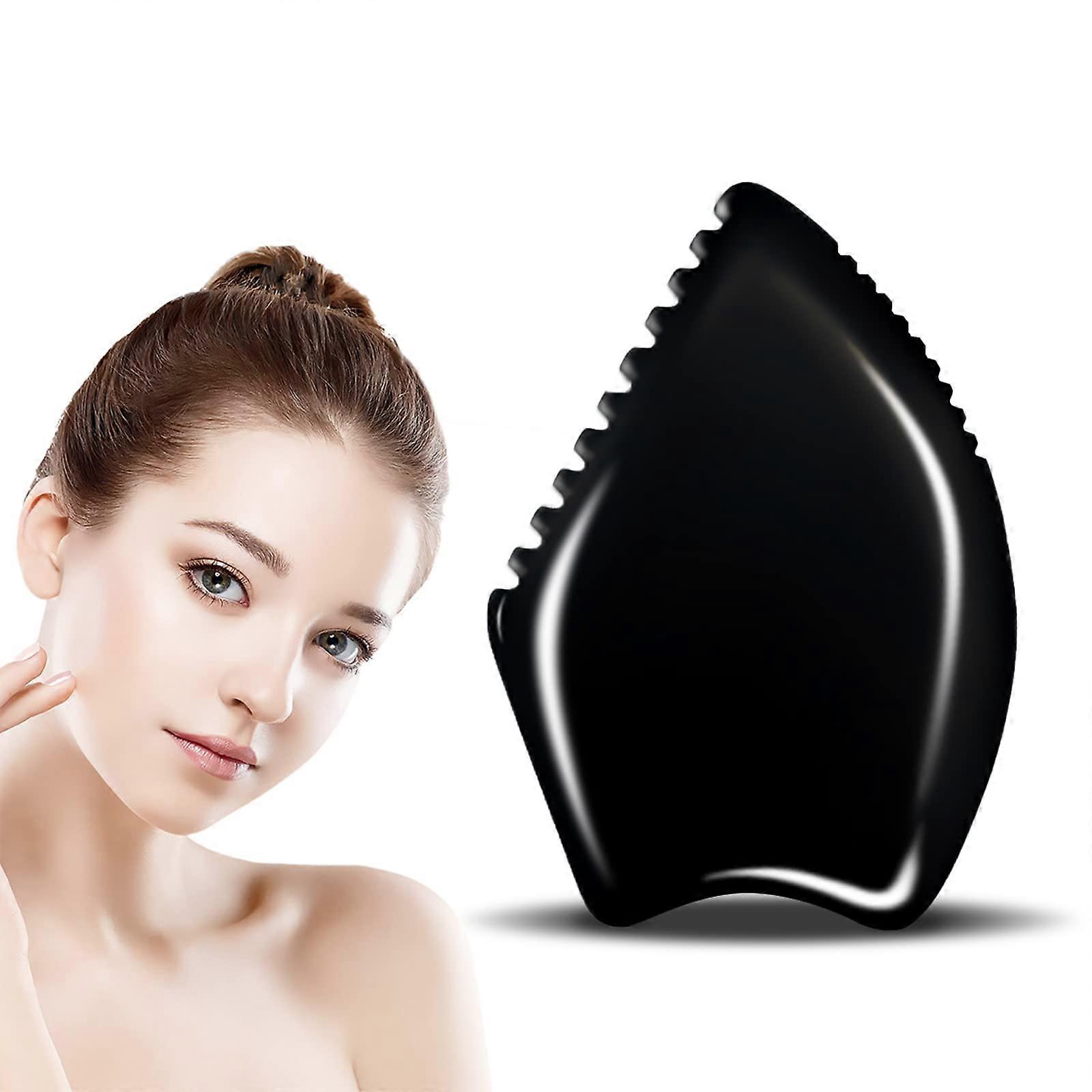 Gua Sha Facial Tool Natural Bian Stone for Face and Neck Puffiness Reduction and Contour Lifting Black