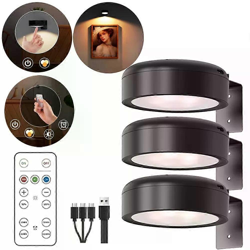 2/3pc Rechargeable Picture Light Magnetic LED Painting Light with Remote and Timer Art Display Light Dimmable 3 Lighting Modes