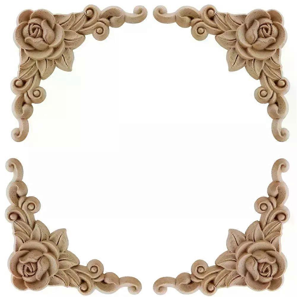Wood Carved Corner Onlay Applique Natural Exquisite Floral Wooden Furniture Decoration Accessories Vintage Flower Design Decor