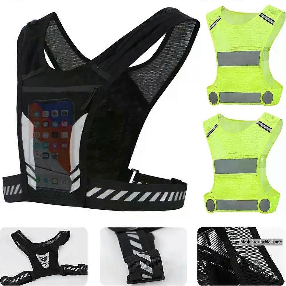 Running Phone Holder Vest Reflective Cycling Vest Unisex Breathable Mesh Running Chest Bag Adjustable Buckle for Men Women