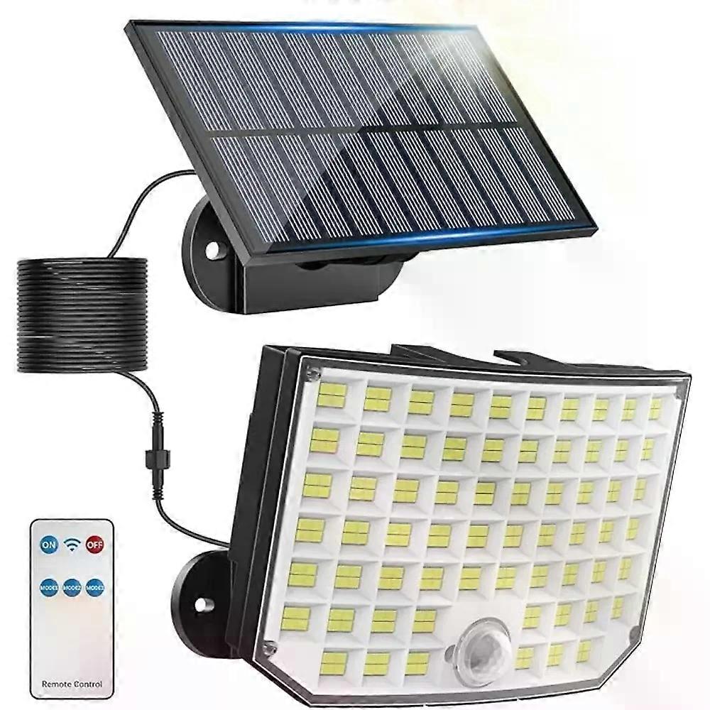 256/234 LED Solar Outdoor Lights Motion Sensor Security Lights 5m Cable IP65 Waterproof Flood Lights for Outside Yard Garage Description Report Item Features: 【 , �� 】--These motion sensor outdoor lights have a wider polycrystalline solar panel that absorbs more sunlight during the day. The high quality battery can power the lights for 10-15 hours when fully charged, providing light throughout the night. 【 】--Simply press the button on these outdoor solar lights to choose from three different modes. ①Off-to-bright: The flood lights outdoor turn on when detecting motion, and shine brightly at 100% for 25 seconds. ②Dim-to-bright: When motion is detected, the solar lights quickly brighten to 100% for 20 seconds then switch to dim at 10% brightness. ③ Constant ON:The solar deck lights stay at a dim 30% brightness all the time. 【 & 】--Made of durable ABS material, these solar lights for outside are built to last. With a professional IP65 waterproof rating, the solar motion lights are resistant to both water and dust. They're rigorously tested to ensure they maintain brightness even when exposed to the elements for extended periods. The tough exterior shell provides long-term protection for the solar patio wall lights. 【 】--These outdoor solar lights have a 180° motion sensor that can detect human or animal movement up to 23 feet away. The dusk to dawn feature includes 234 LEDs covered with convex optical lenses, providing a brighter and more concentrated light distribution compared to lights without lenses. The solar outdoor lights can be controlled with a remote from up to 10 feet away, making it easy to turn them off when necessary. 【 】--These solar motion lights come with a 16.4 ft cable that allows for separate installation of the solar panel and light panel in the most useful locations. All necessary screws and anchors are included for easy installation on driveways, front and back yards, gardens, pathways, patios, decks, and porches,providing additional lighting,security and safety. Specification: --battery:1500mah --color temperature:6500k -- Watperoof: IP65 -- Material: High Grade ABS Pack List: --1*product --1*remote control --1*manual --installation parts 1. after you get the product, please install the solar panel on where can get enough sunshin, and connect the line well and then turn the switch on the product on 2. it will automatically work at night and off at daytime 3. if you test it at daytime or under bright environment, please use something to cover the solar panel and then test it #productDescription h3 { margin: 0.75em 0px 0.375em -1px; } _x000D_