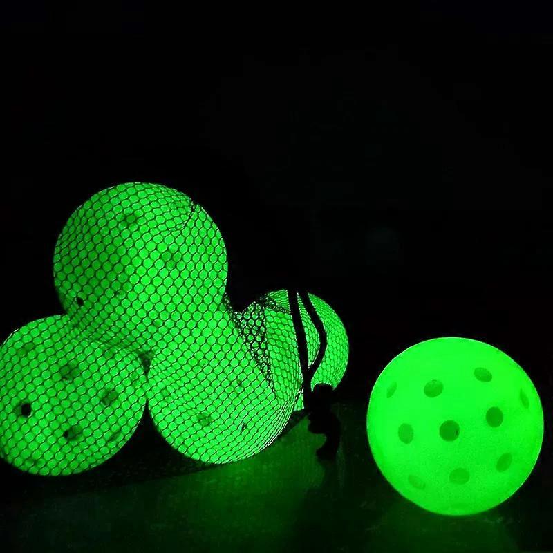 6Pcs Luminous Pickleball 74MM Night Light Green Ball 40 Holes for Night Play and Training Glowing In The Dark Colorful Golf Ball _x000D_ _x000D_ Color:white/yellow/darkblue/lightblue/red/orange/green _x000D_ Size:74mm _x000D_ Holes:40holes _x000D_ Material:PE _x000D_ Package:6pcs/bag _x000D_ _x000D_ 1. Glow at Night : this pickleballs is designed with nice elasticity in bright color, which can absorb plenty of light during the day and will glow at night, can better attract people's attention and give you a happy playing experience. _x000D_ _x000D_ 2. Enjoy a few more games: these outdoor pickleballs are made of PE material, are durable, will not easy to break or fade, which can accompany you for a long time, you can play with confidence, can bring you a good playing experience. _x000D_ _x000D_ Note: the glowing pickleball needs a flashlight to shine. And time of shining doesn't last long. _x000D_ _x000D_ _x000D_ _x000D_ _x000D_ _x000D_ _x000D_ _x000D_ _x000D_ _x000D_ _x000D_ _x000D_