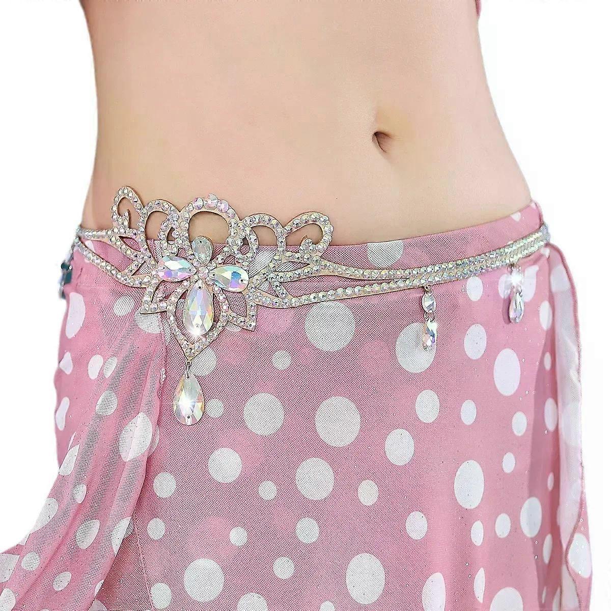 Female Belly Dance Waist Chain - Oriental Trkiye Dance Belt with Color Diamonds & Rhinestones Sparkly Dance Accessories