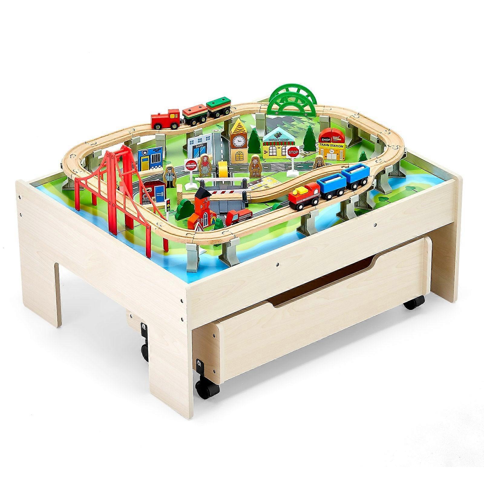 Vevor Train Table 100 Pcs Wooden Kids Activity Table With Rolling Storage Drawer Kids Play Table & Chair Sets