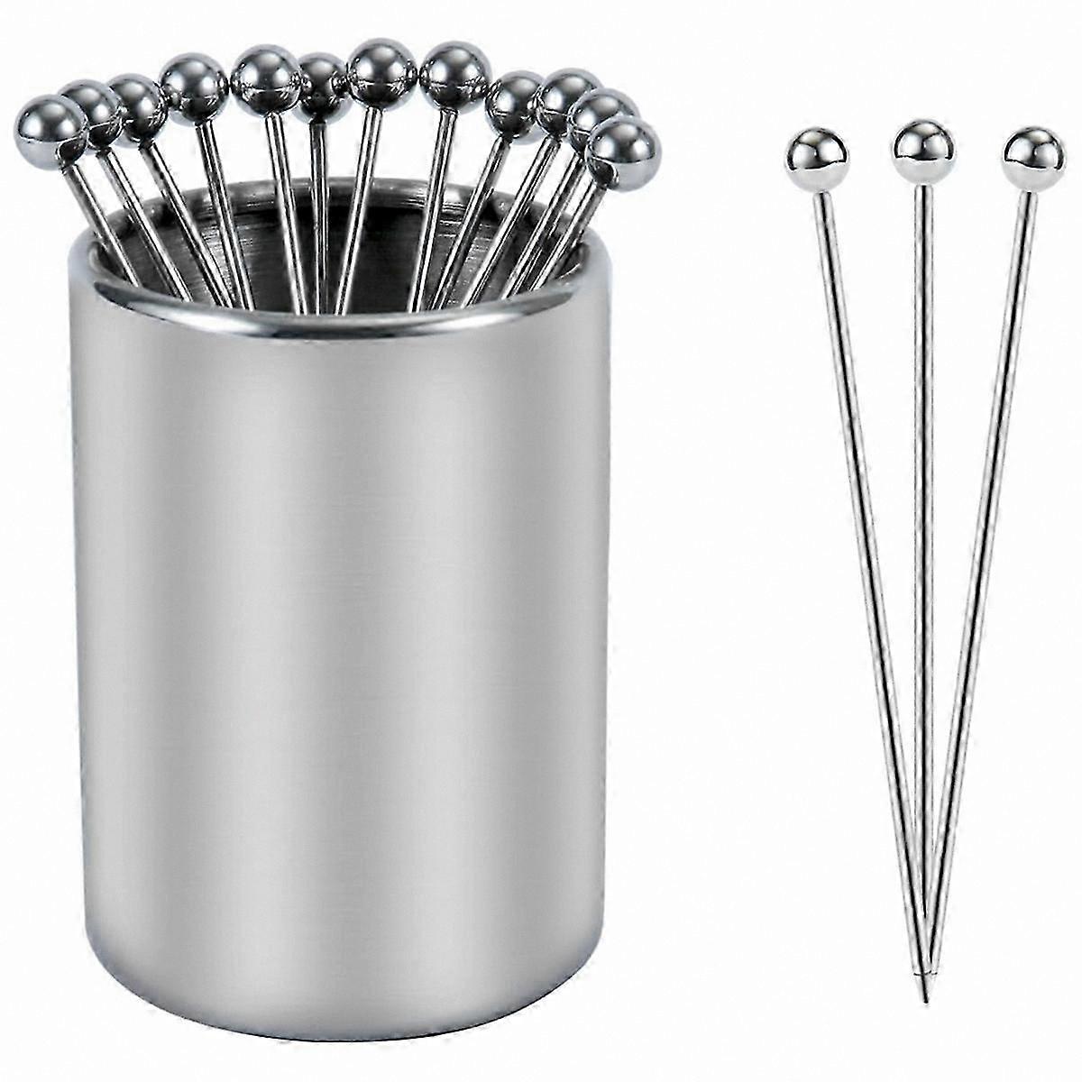 Stainless Steel Cocktail Picks with Holder, 12 Reusable Decorative Tooticks for Drinks and Appetizers