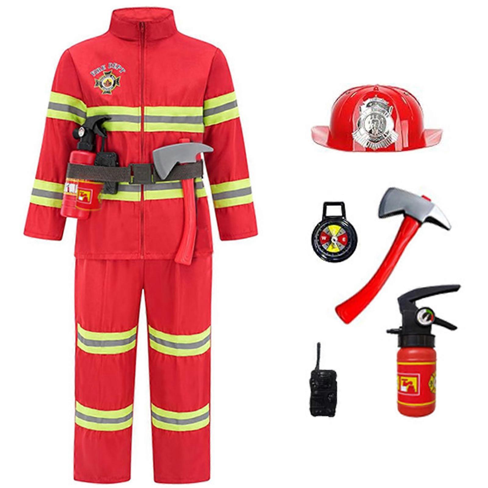 Firefighter Costume Accessories Fireman Costume Toy Firefighter Dressing Up Clothes Firefighter Pretend Role Play Set red suit 140cm
