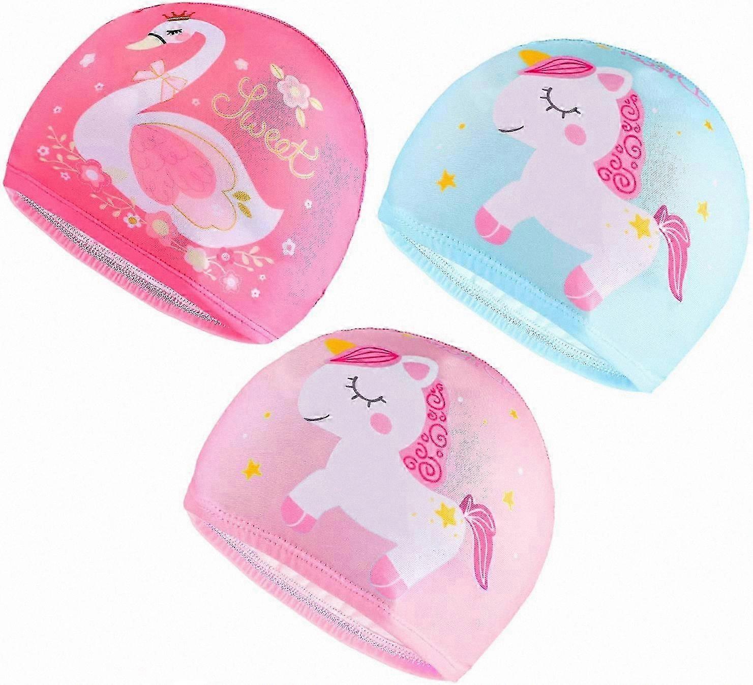 3PCS Kids Swimming Caps, Waterproof Unisex Swim Hats for Children 6-14 Years