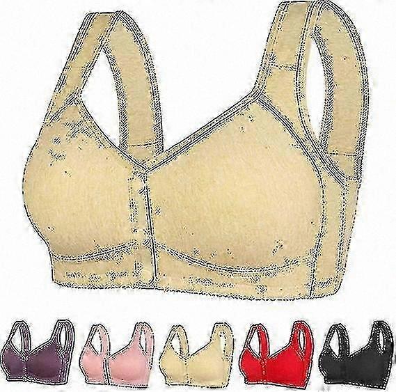 The Cup Body Comfort Front Closure Bra features a four-corner cup design that conforms to modern ergonomic principles, preventing shifting or tightness. The four-corner adjustment design allows for personalized fit while walking, ensuring comfortable support for the chest and undergarments. U-shaped back design with wide shoulder straps helps relieve back pressure. The widened shoulder straps and expanded side panels distribute pressure evenly, enhancing security and comfort. Wire-free construction provides stable support without displacement. The bra maintains its shape through 360-degree movement and offers unrestricted wear. Made from high-quality natural fiber material, it is soft, gentle on the skin, and comfortable against the body. Front buckle closure allows for easy on-and-off wear, offering simplicity and convenience.