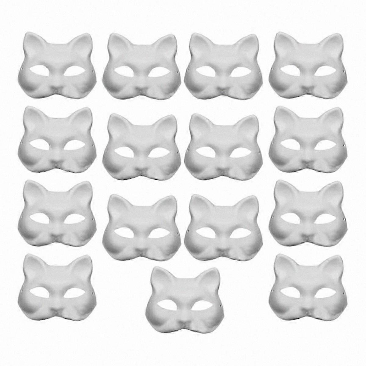 15pcs DIY White Paper Cat Masks with Acrylic Paints for Hand-Painting