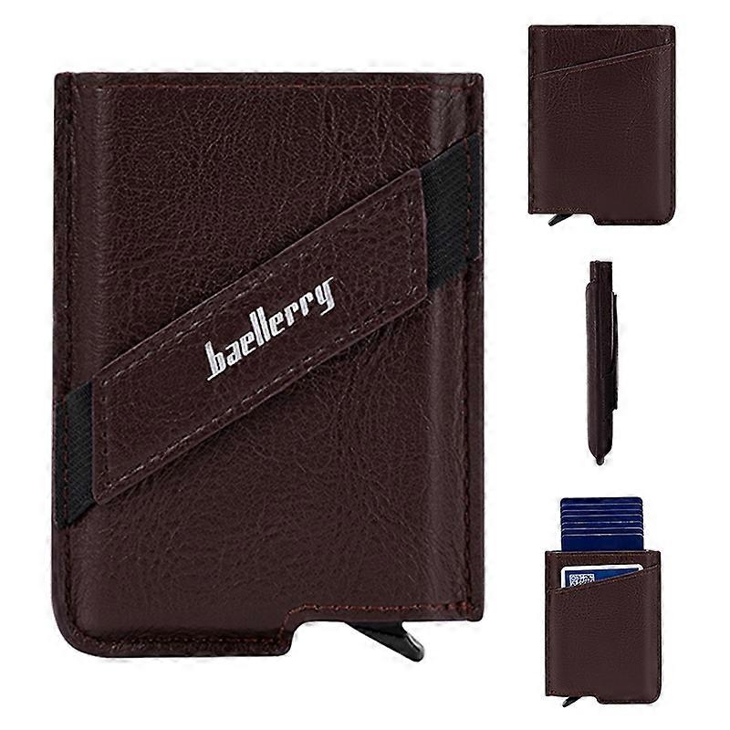 BAELLERRY K9219 Pop-up Men's RFID Blocking Card Holder PU Leather+Metal Card Carrying Case