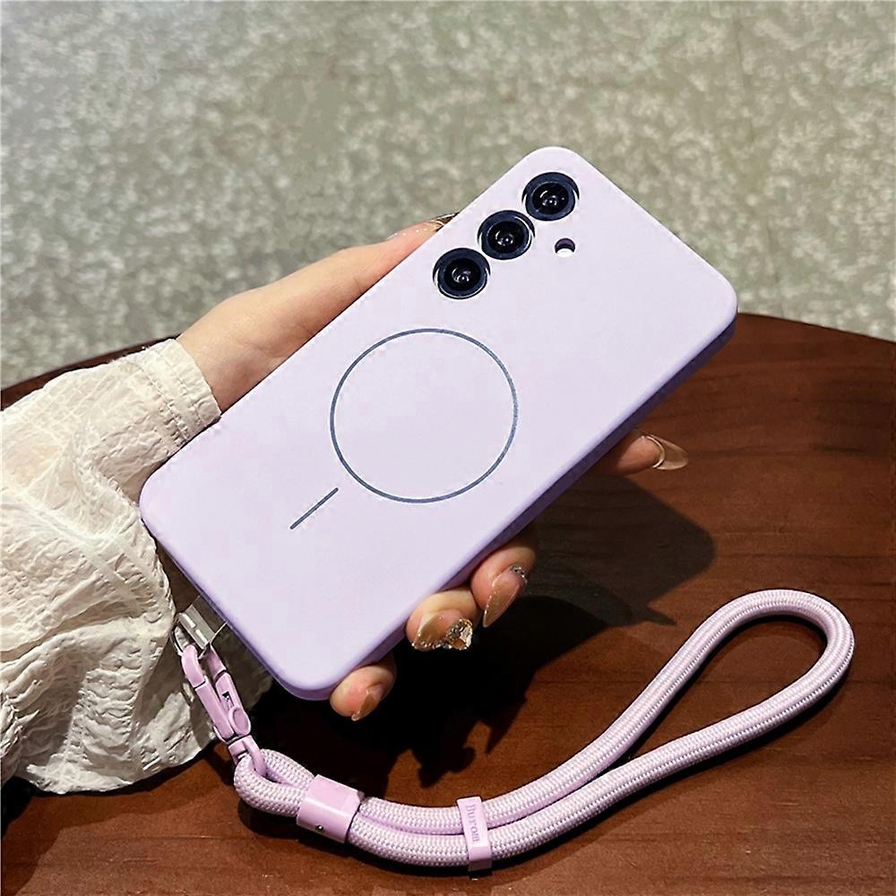 For Samsung Galaxy S25+ Magnetic Case Soft Skin-Touch Liquid Silicone + PC Phone Cover with Wrist St