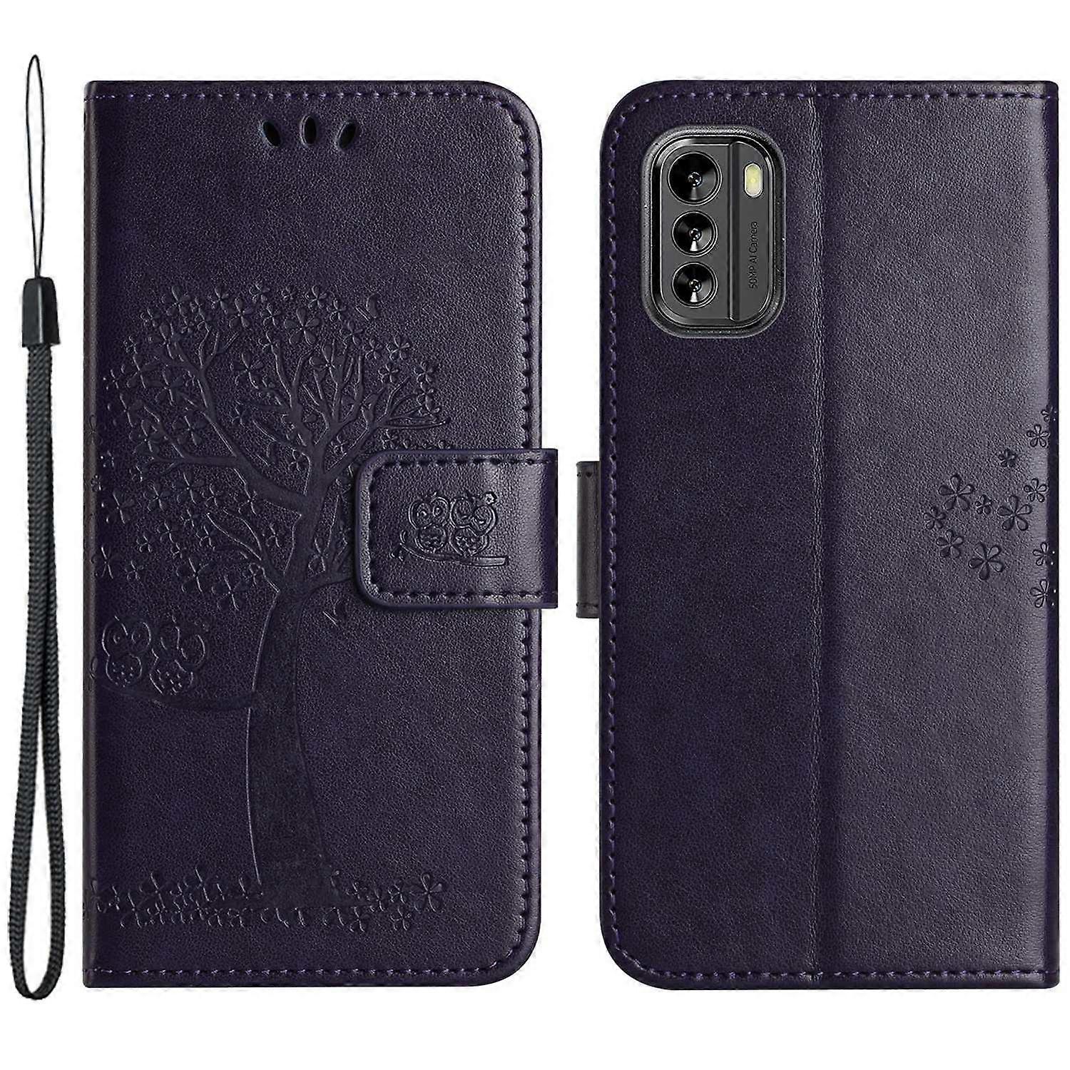 Magnetic Clasp Phone Cover for Nokia G60 5G,PU Leather Imprinted Owl Tree Pattern Shockproof Case wi