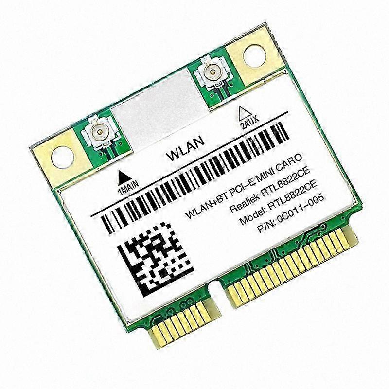 Chipset: Realtek RTL8822CE Antenna: 2 IPEX MHF, 2T2R connectors Interface: Mini PCIe half size Frequency: 2.4/5 GHz Bluetooth version: 5.0 Speed: 2.4 GHz – 300 Mbps, 5 GHz – 867 Mbps IEEE standards: 802.11ac/a/b/g/n Supported operating systems: Windows 10 / 11 (64-bit only) Color: Green Material: PCB Package contents: 1 × WiFi card Note: Product appearance and color may vary slightly between batches; this does not affect functionality. Display settings and lighting conditions may cause slight color variation between the image and the actual product. Dimensions are subject to a tolerance of ±1–3 cm.
