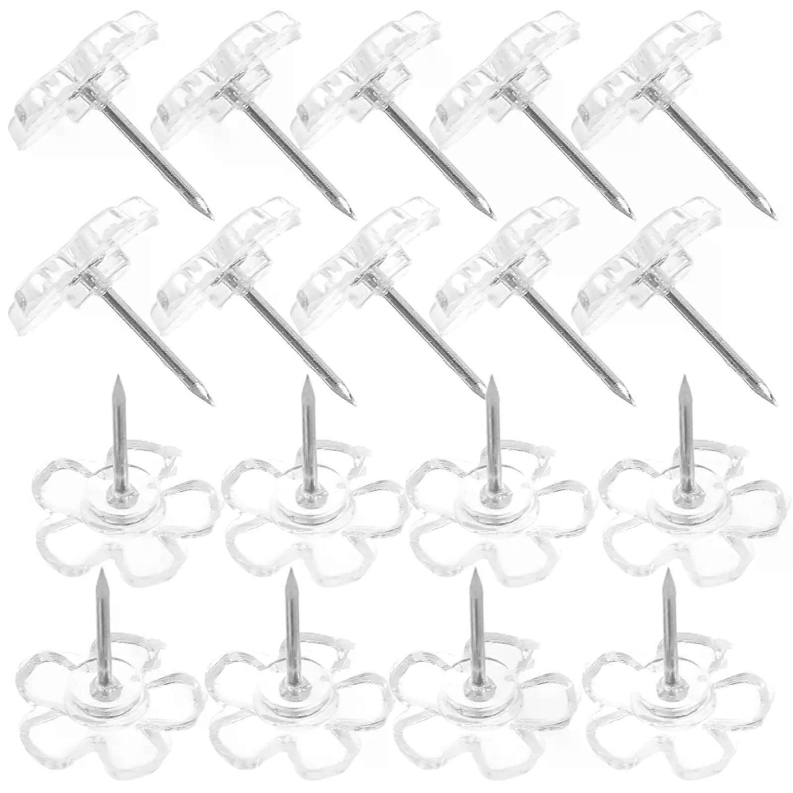 100Pcs Transparent Plum Blossom Eyelet Push Pins Flower Shape Clear Thumb Tacks Map Push Pin For Bulletin Board Corkboard Photo