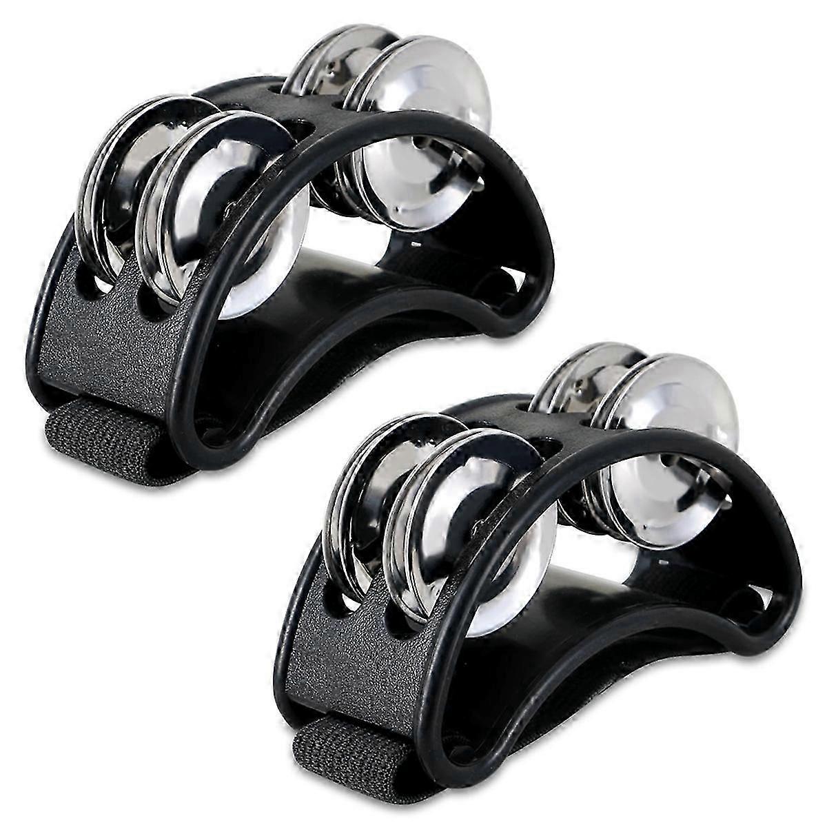 2-Pack Foot Tambourine with Steel Jingles, Percussion Pedal Instrument