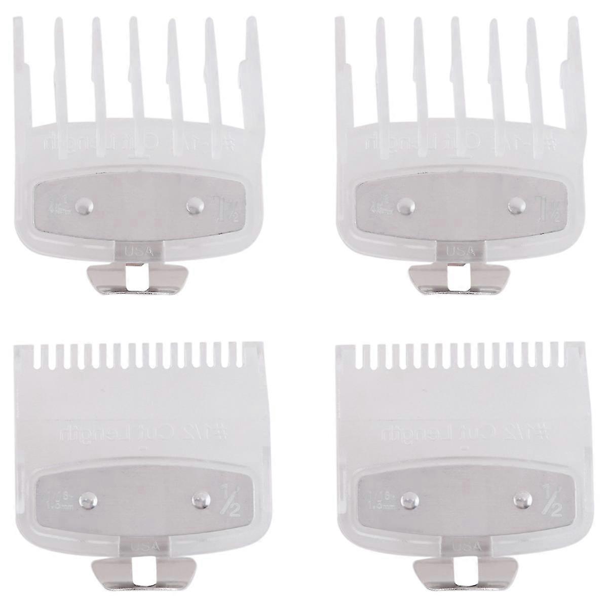 1. Wet and dry dual-use, waterproof design for quick and easy trimming. 2. Rounded comb teeth help prevent scalp irritation, ensuring safe and comfortable use. 3. Includes two guide comb sizes (1.5mm and 4.5mm) for customizable length control. 4. Enables uniform hair cutting with a single blade. 5. Simple attachment: slide the comb onto the blade base and secure in place. Item Type: Guide Comb Size: 1.5mm, 4.5mm Color: White Material: Plastic Package Contents: - 2 x 1.5mm guide combs - 2 x 4.5mm guide combs Note: Colors may vary slightly due to screen settings and lighting conditions. Measurements may vary by ±1–3mm.