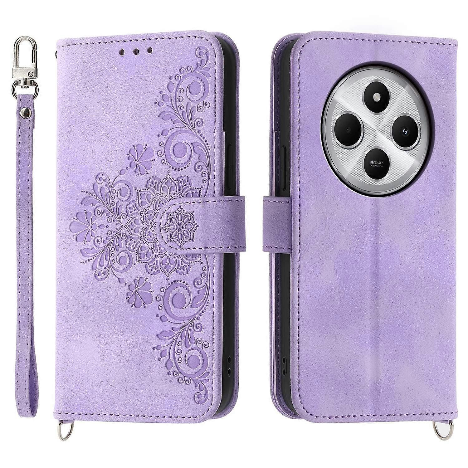 Wallet Case For Xiaomi Poco C75 4G/Redmi 14R 5G/14C 4G Flower Pattern PU Leather Phone Cover with St