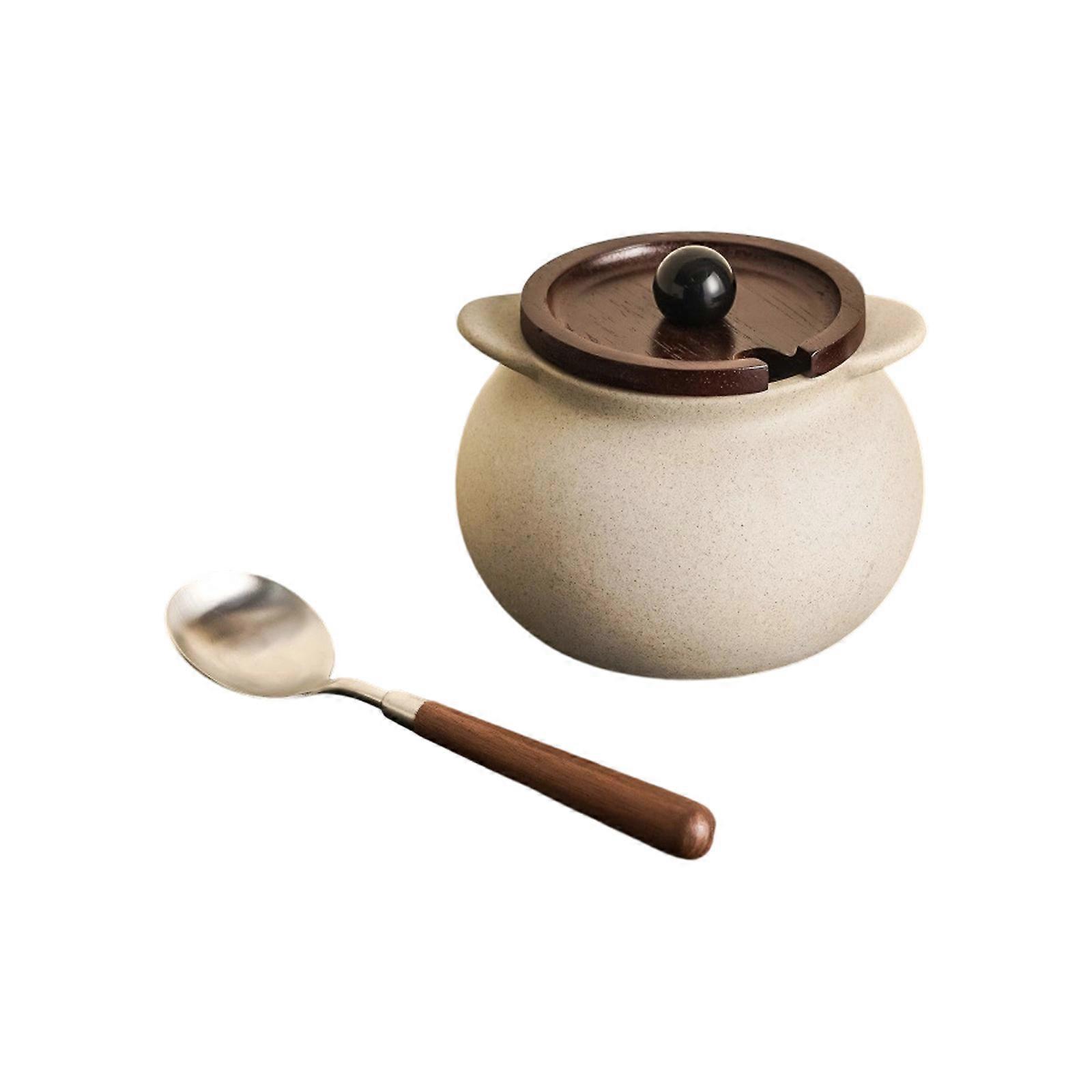 User Friendly Stoneware Spice Container with Spoon Large Capacity for Kitchen Organization Sealed Lid Preserves Dry Goods S
