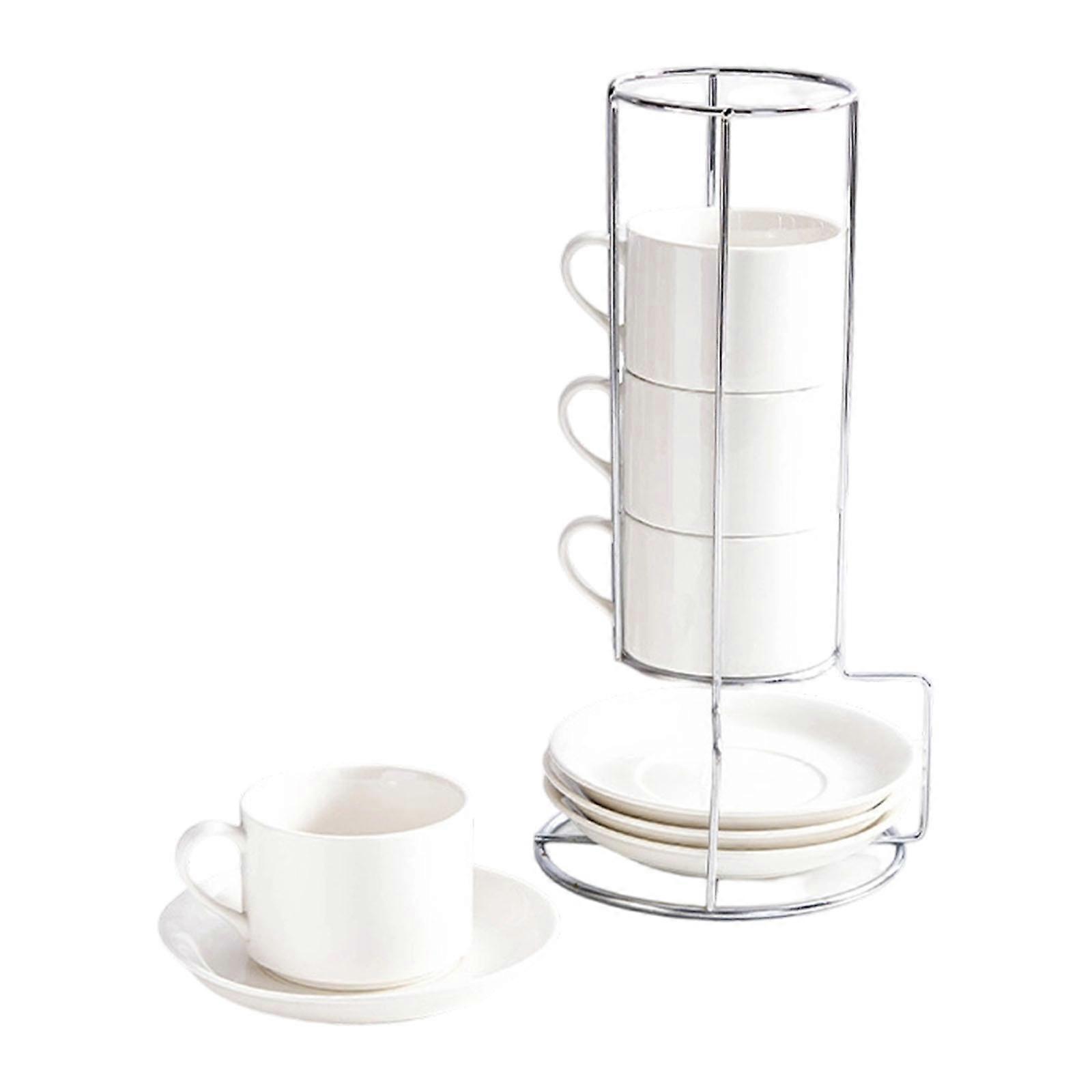 Elegant ceramics Coffee Cup and Dish Set 8OZ Capacity Highlighting Smooth smooth for Strengthened Dining Knowledge and Light Meal White