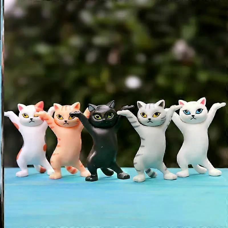 5 PCs Dancing Cat Figure Decoration Animation Cat Model Fashion Toy Enchanting Cat Capsule Toy Doll Cake Decoration