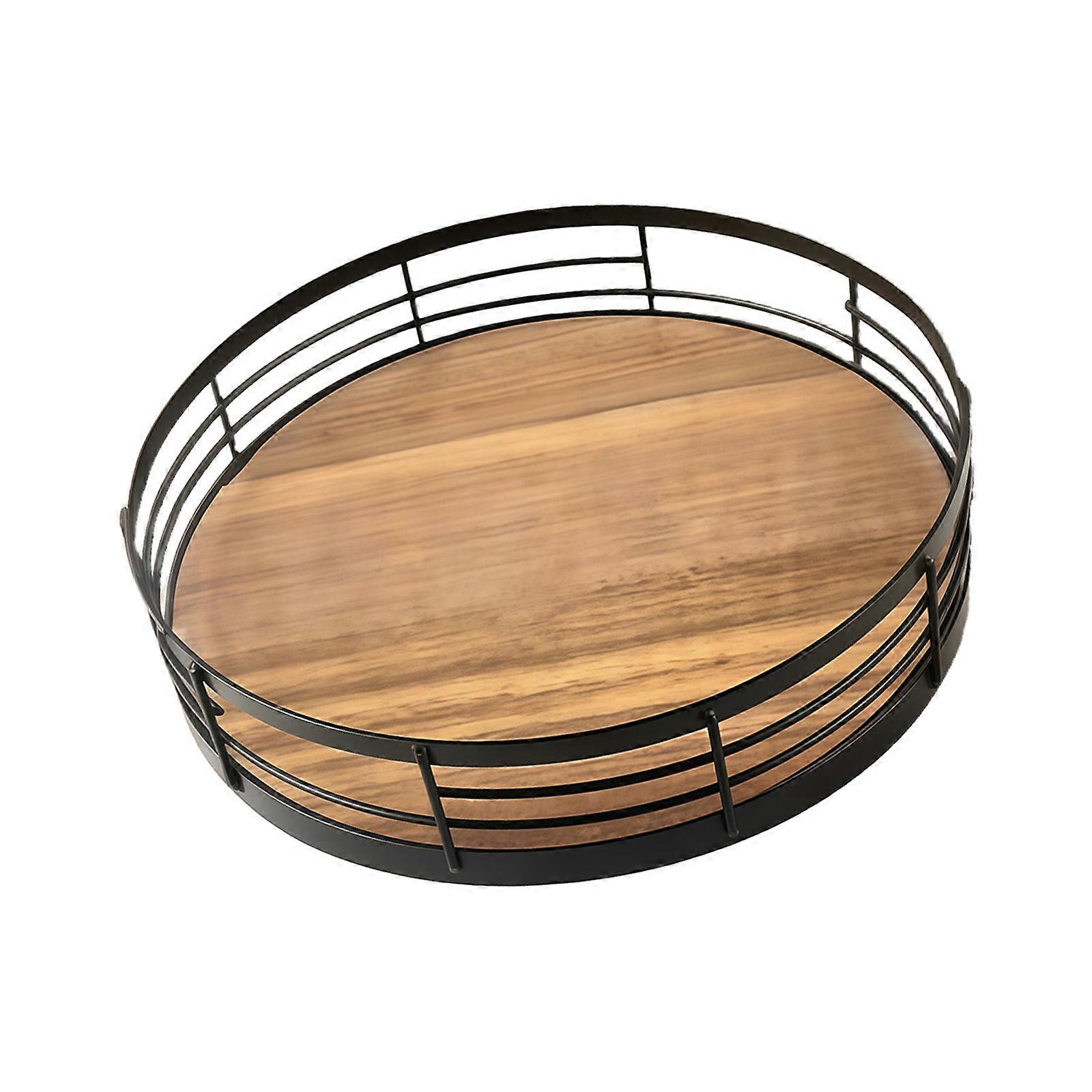 Natural Wood Round Rotating Tray Healthy Kitchen Storage for Decoration Plant Safe Use Multicolor