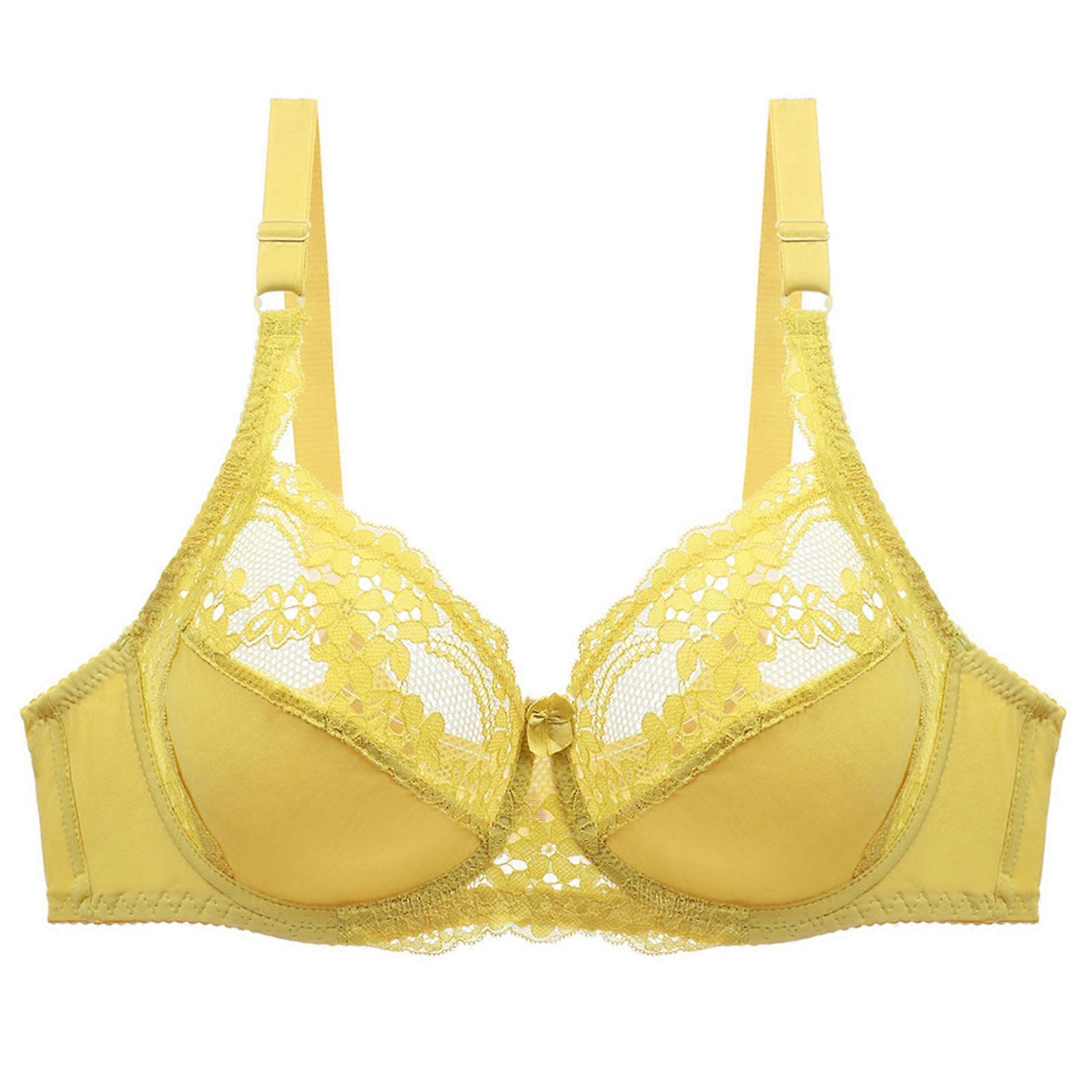 Women's Lace Bra None Padded Underwire Unlined Bra Full Coverage Pluses Size Lace Bralette Everyday Lingerie Yellow 110D