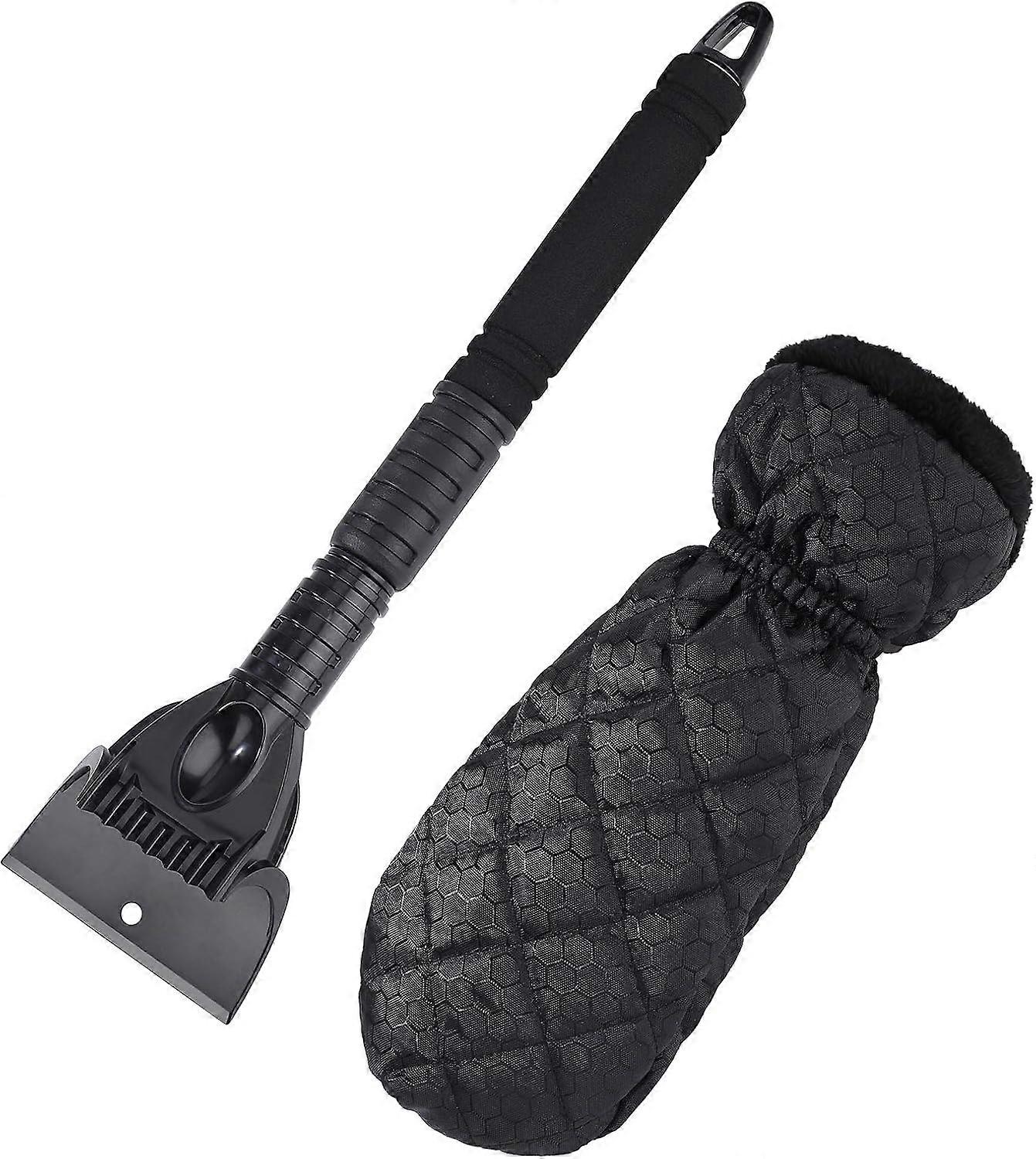 Car Ice Shovel, Car Snow Shovel with Warm Fleece Lined Gloves
