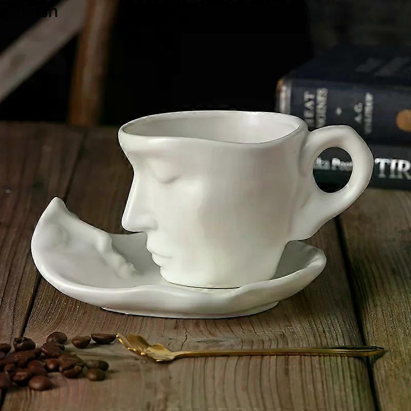 Couple Face Kiss Ceramic Mug Set Morning Coffee/Tea Milk Cups with Saucers Breakfast Drinkware for Lovers