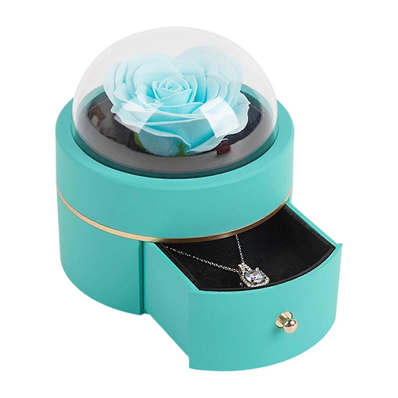 Drawer Compartment Ring Holder with Exquisite Rose Embellishment Circular Shape for Engagement Proposals Anniversary sky9 blue