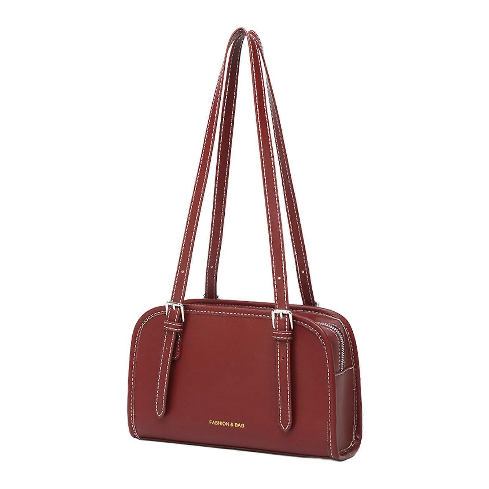 Sac à main rétro en PU, polyvalent et spacieux, avec bandoulière moderne et élégante, idéal pour les tenues décontractées. Couleur bordeaux.