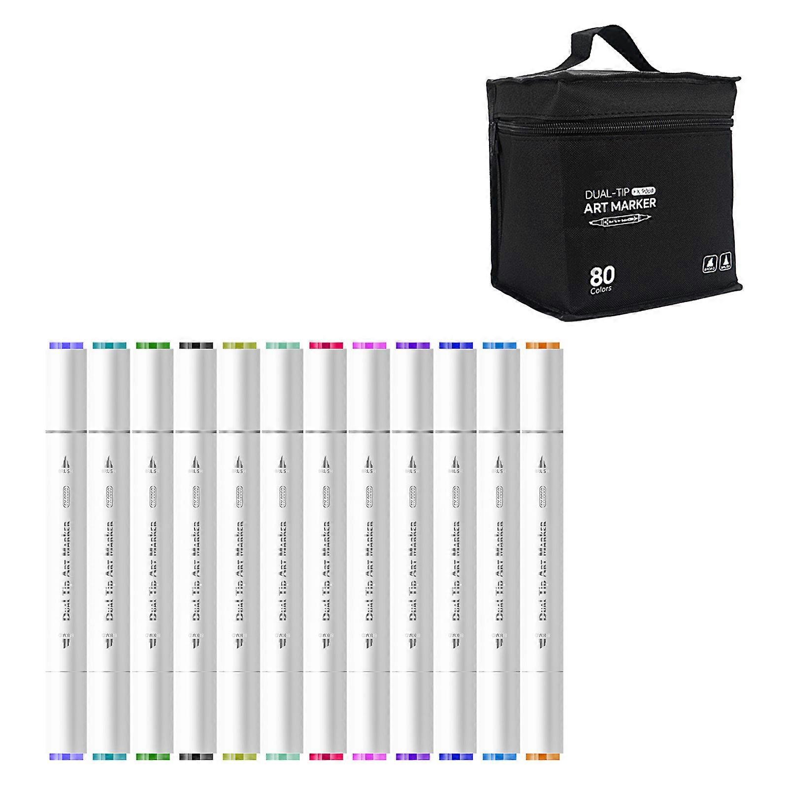 80 Color Double Headed Watercolor Marker Pen with Carrying Case Fine/Broad Tip Art Marker for Art Drawing Card Making Multicolor