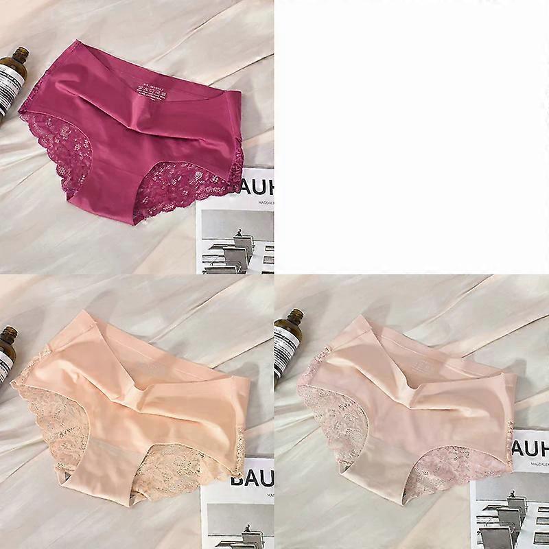 1/2/3Pcs Women's Panties Exquisite Lace Underwear Sexy Lingerie Big Size Sweet Silk Satin Briefs Soft Cozy Underpants