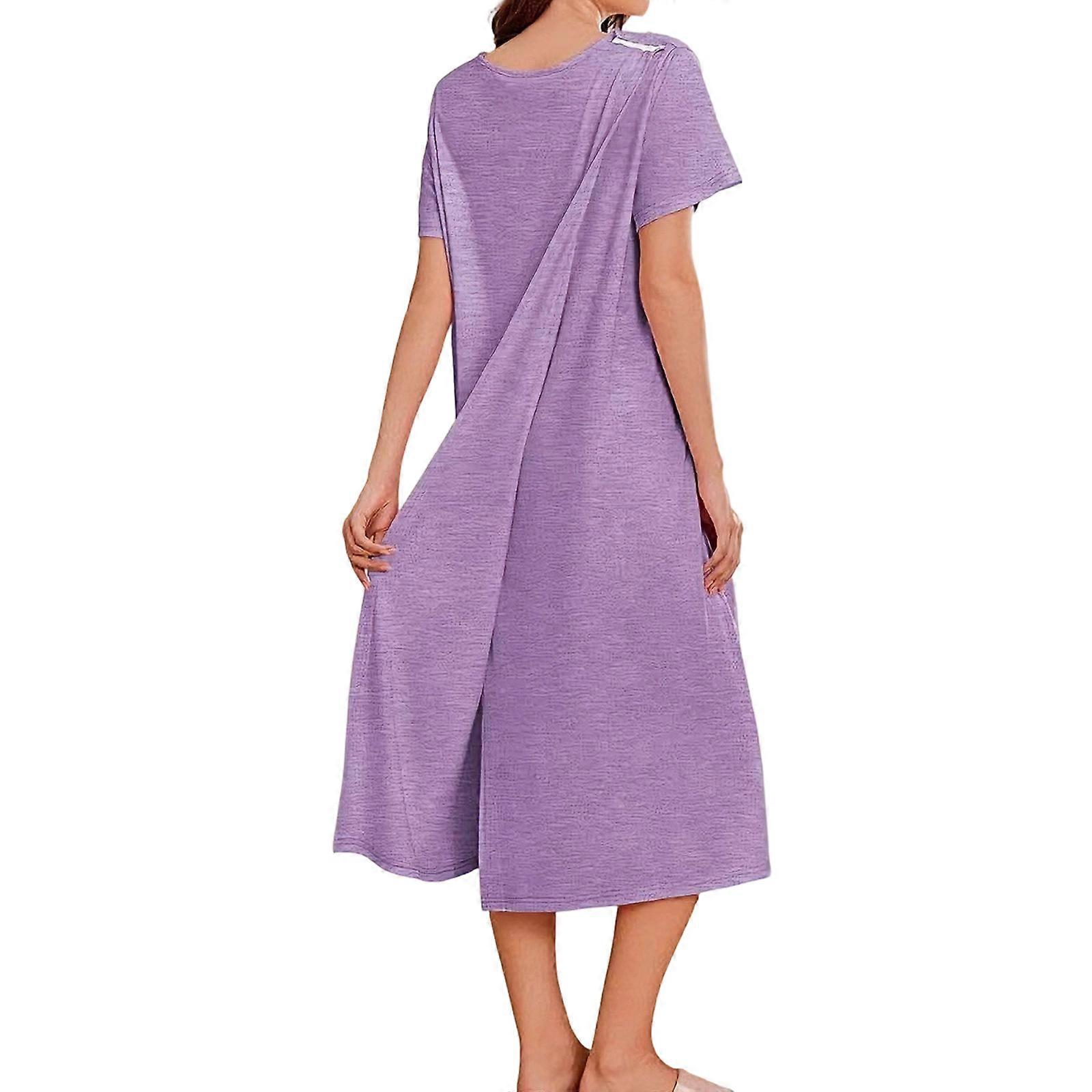 Womens Recovery Dress For Patients Cotton Tear Away Open Back Hospital Gown with Shoulder Snaps Short Sleeve Nightgown XL VT