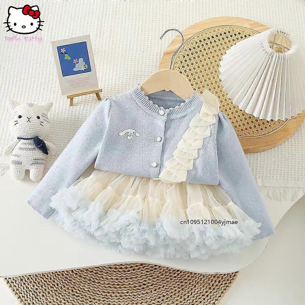 2Pcs Anime Sanrios Hello Kitty Kids Woolen Jersey Cake Skirt Cinnamoroll Girls Knitted Sweaters Coats Tutu Skirts Princess Dress
