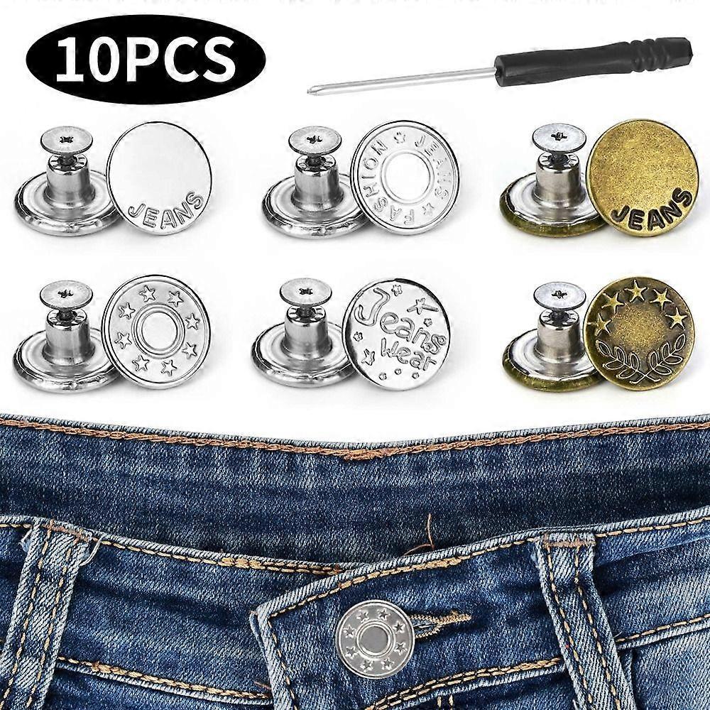 10Pcs/pack 17mm Nail Free Adjustable Waist Extenders Buttons Jeans Waist Buttons Detachable Clothing Pants Waist Buckle