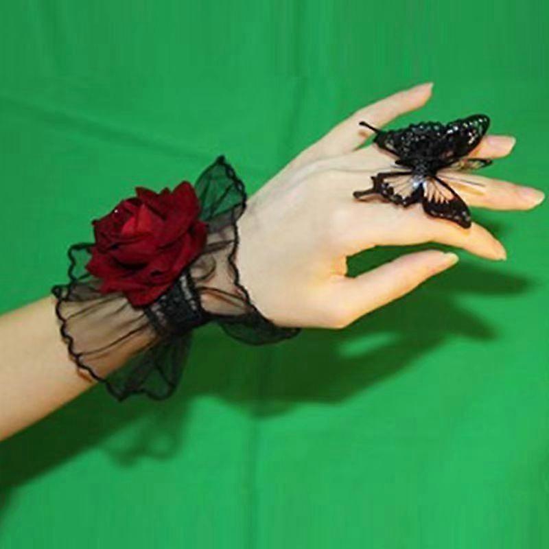Personality Trend Dreamy Dark Lolita Lolita Lace Wrist Sleeves Women's Burgundy Rose Gown Sleeve Temperament